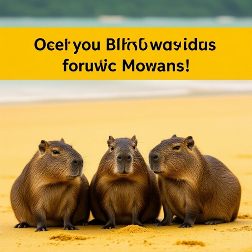 Tre piccoli Capibara col corpo dΓ cocco che stanno sulla sabbia