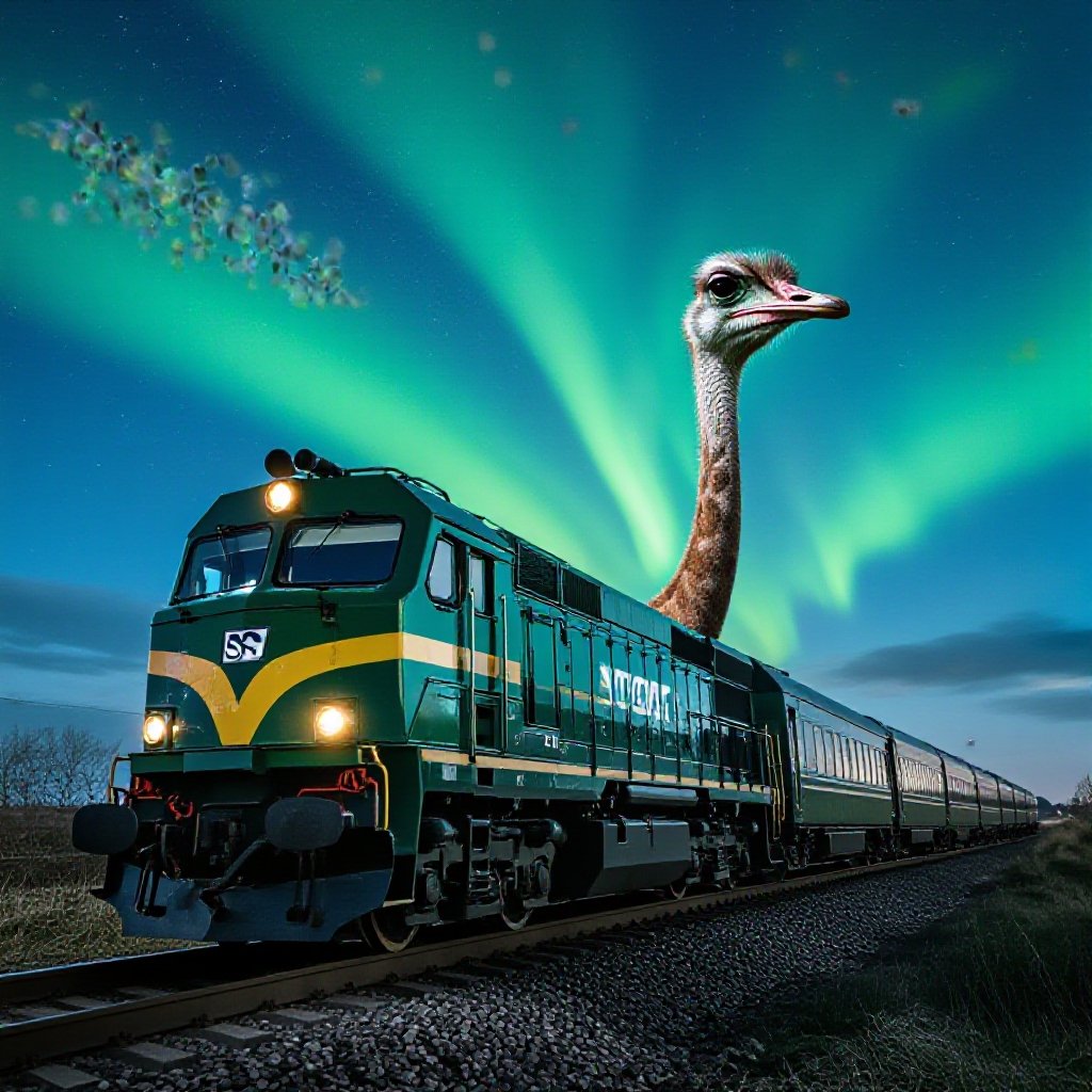 Trenostruzzo Aurora 100000000 (an aurora train with an ostrich head)