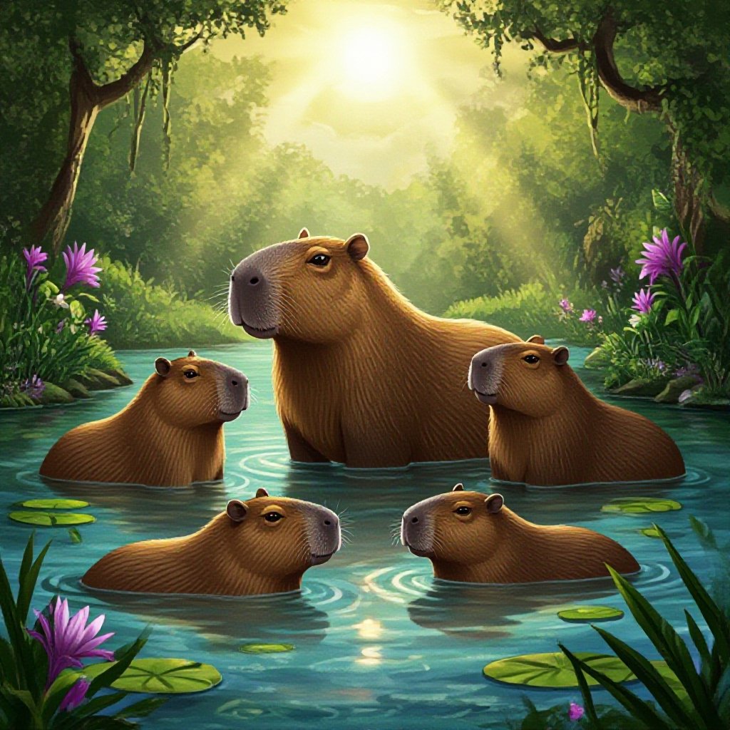 Watermelon capybara in jungle