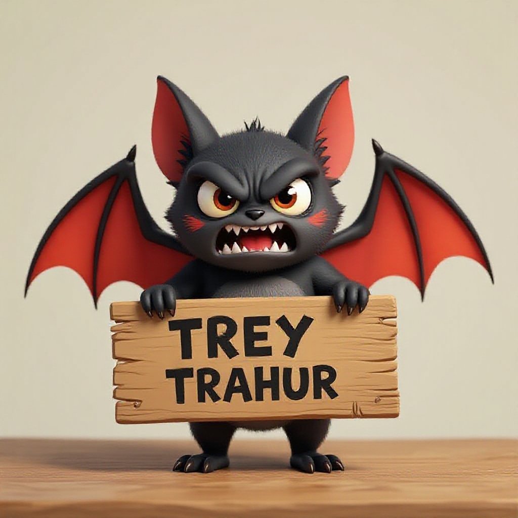 Trey trey trey sahur (Bat with arms and legs and an angry face holding a wooden sign that says Trey)