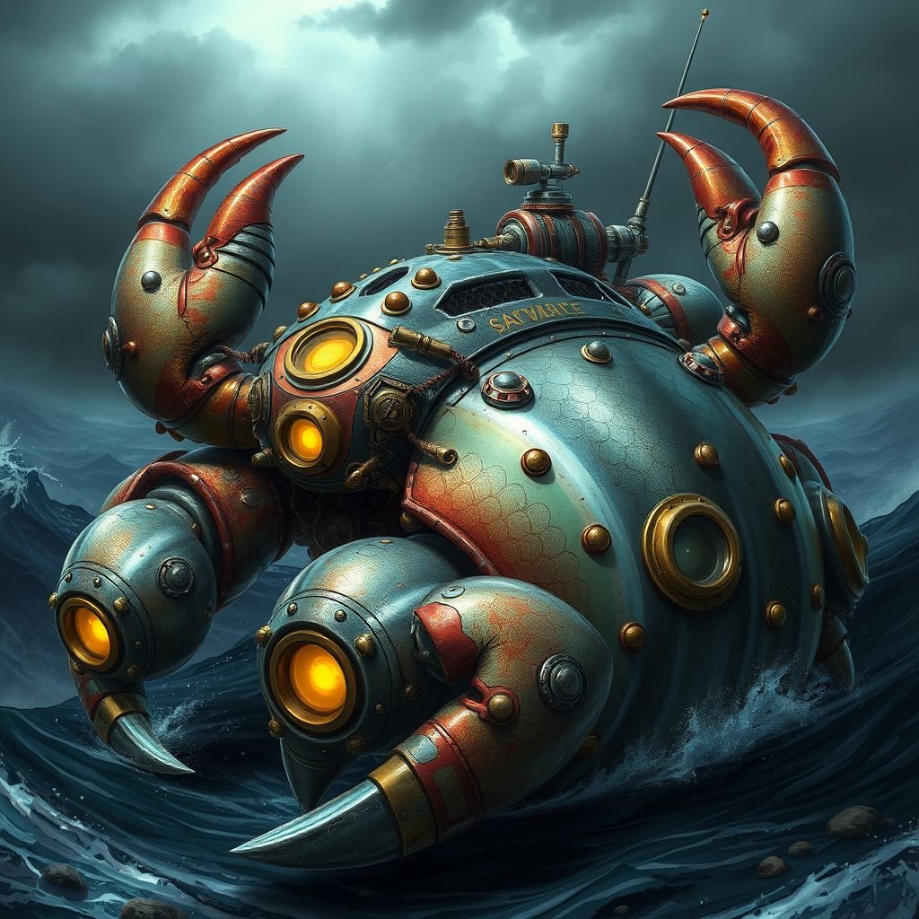 A crap in a seashell with human legs and octopus hands. Make it to be scary. For a font use some antiutopic sea cost