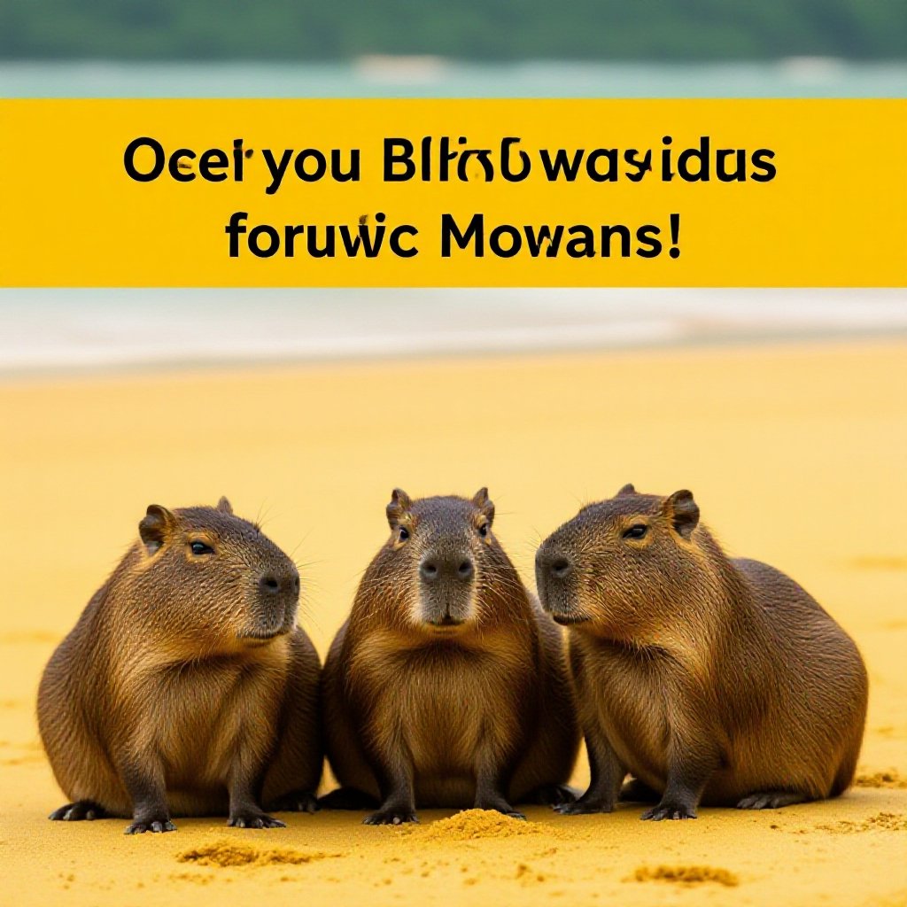 Tre piccoli Capibara col corpo dà cocco che stanno sulla sabbia