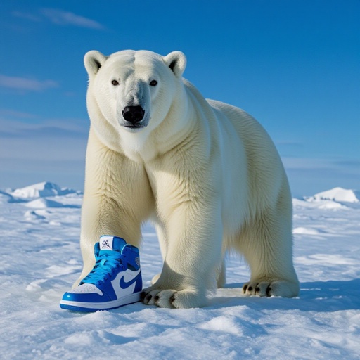 Un orso polare sul ghiaccio con le scarpe Jordan azzurre
