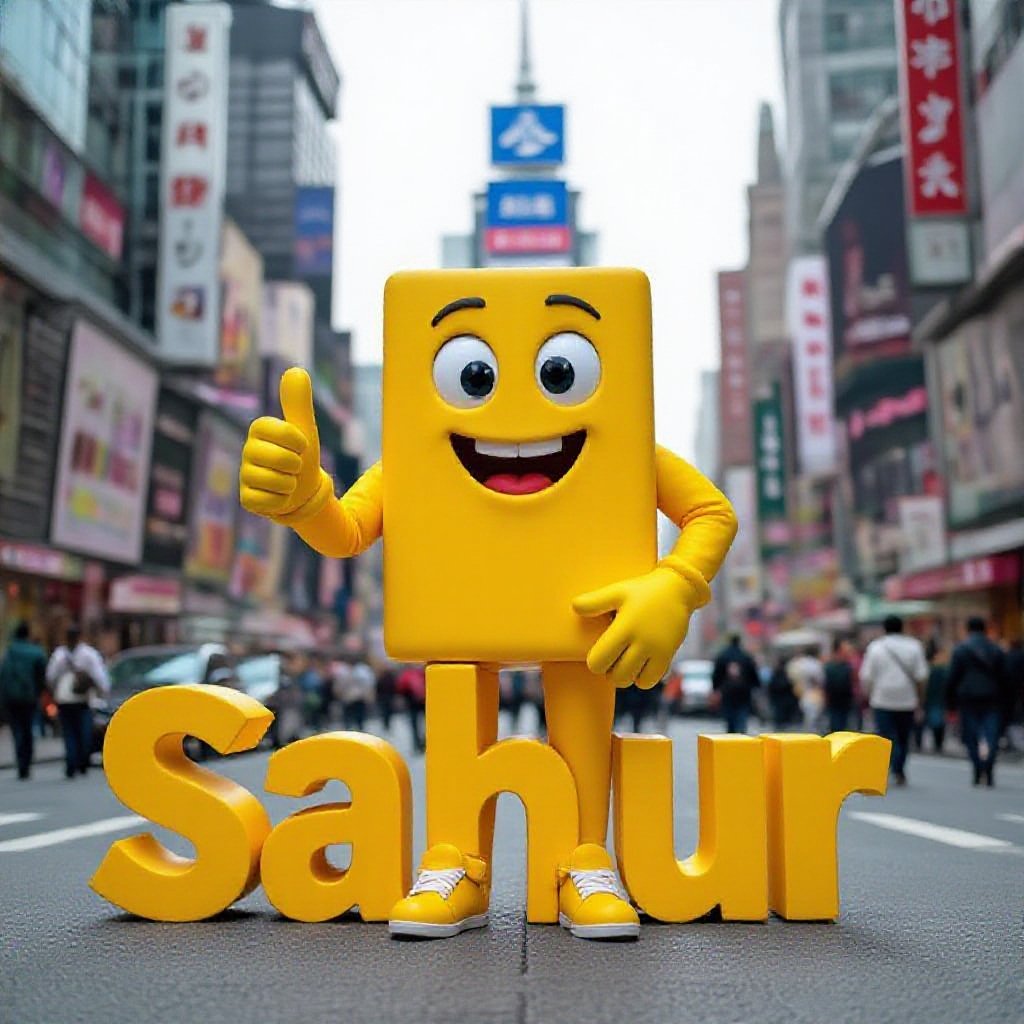 Meh Meh Meh Meh sahur (A yellow maths minus sign in a city with a thumbs middle and the wear yellow gloves and shoes)