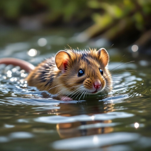 Wolly mouse swimming in river