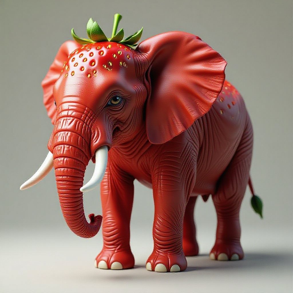 Un elefante fuso a una fragola