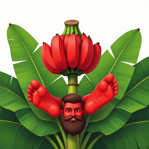 Yaryeryuryeryeryaryuryir wir (Red banana tree with 2 red human feet and a red human face with beard)