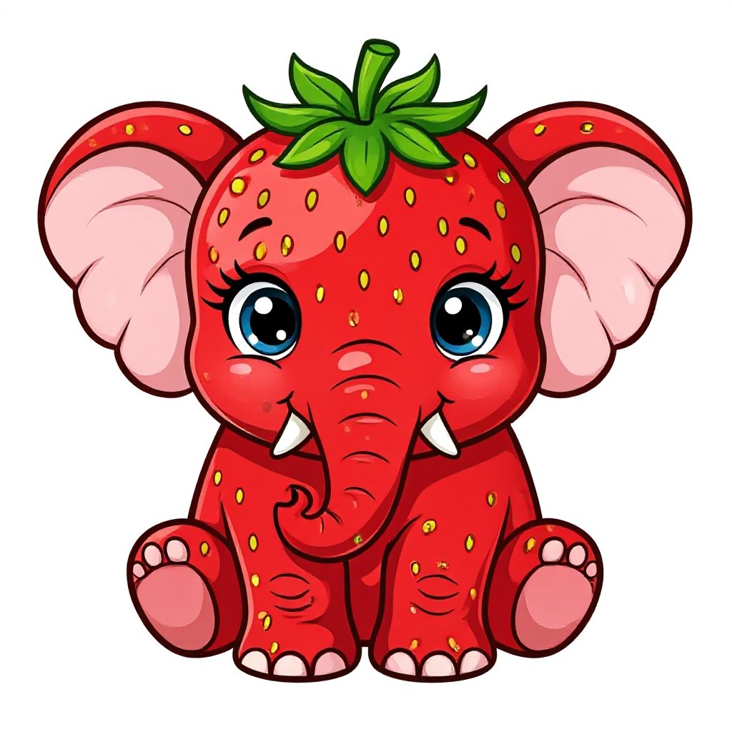 Un elefante fuso a una fragola