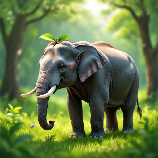 Un elefante mela realistico nel bosco