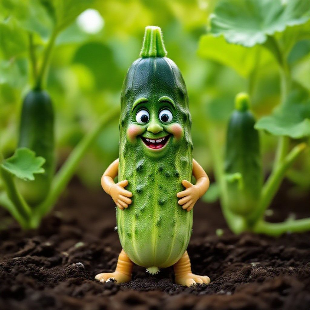 Zucchino Perbertino (cucumber with tan coloured legs with a cheeky human face)