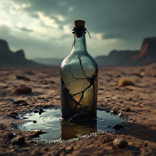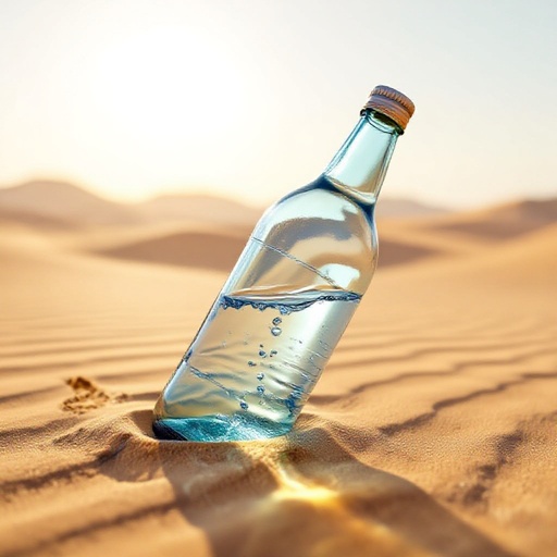Bottiglia nel deserto aperta che sta perdendo acqua