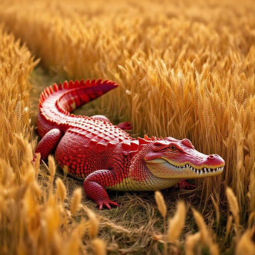 Un coccodrillo Rosso in una campagna di piena di grano