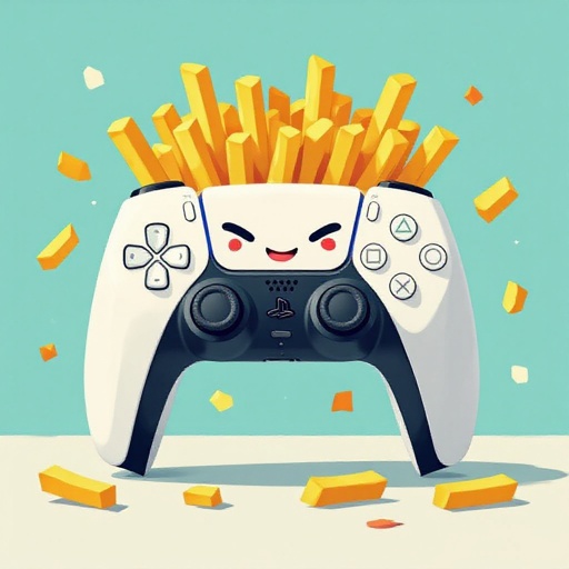 Crea un controller della PS5 con faccia e con patatine fritte addosso