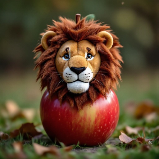 Una mela con un testa da leone