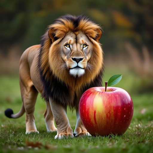 Un leone col corpo di un mela
