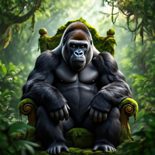 Chimpanzee stuck in a banana drinking coffee while spilling the coffee down his chest.